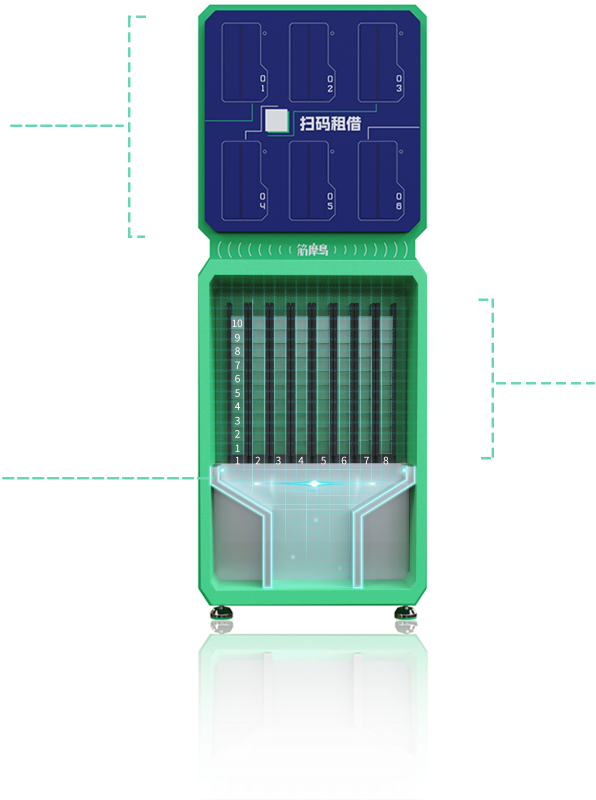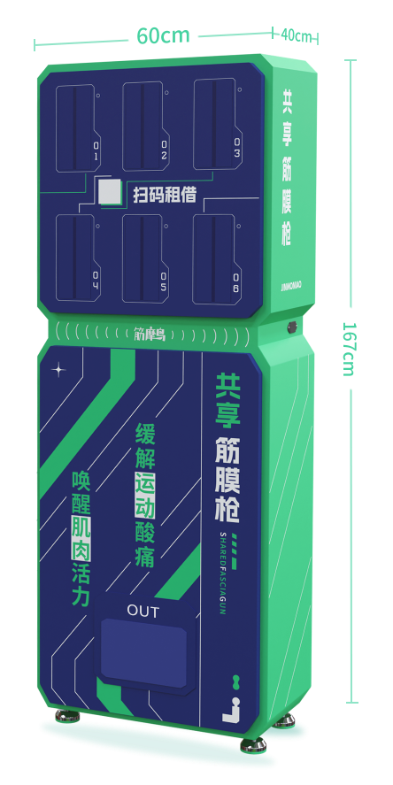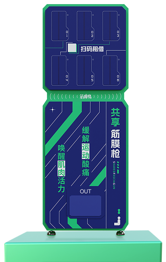 筋膜枪区域由6个枪仓组成。可完成筋膜枪租借和归还操作。